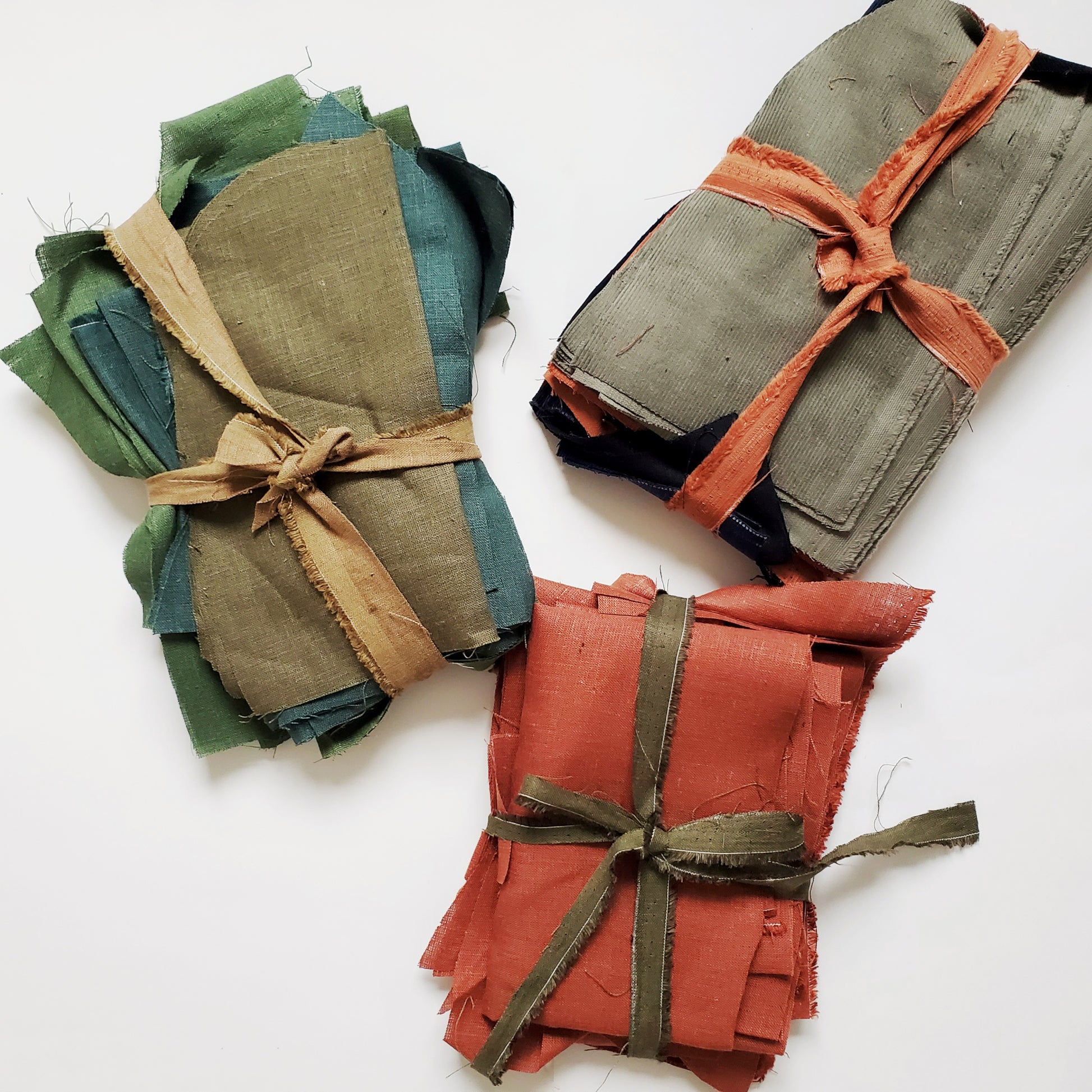 On our path to being a zero-waste business, we made a pledge not to throw away a single scrap of fabric to the landfill. We've sorted all fabric scraps by color and material so you can make your perfect bundle to use up for anything your imagination comes up with.