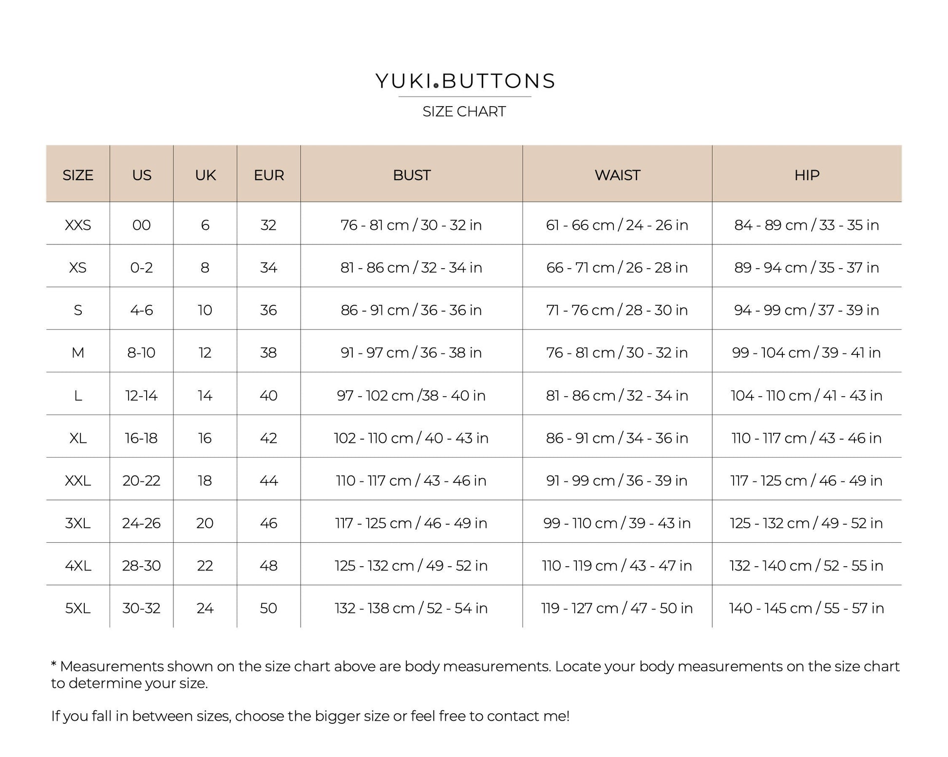 For the Shorteralls, we recommend choosing the size based on your hip measurement or the widest part of your body. If you fall on the bigger end of one size and prefer a loose fit, size up.