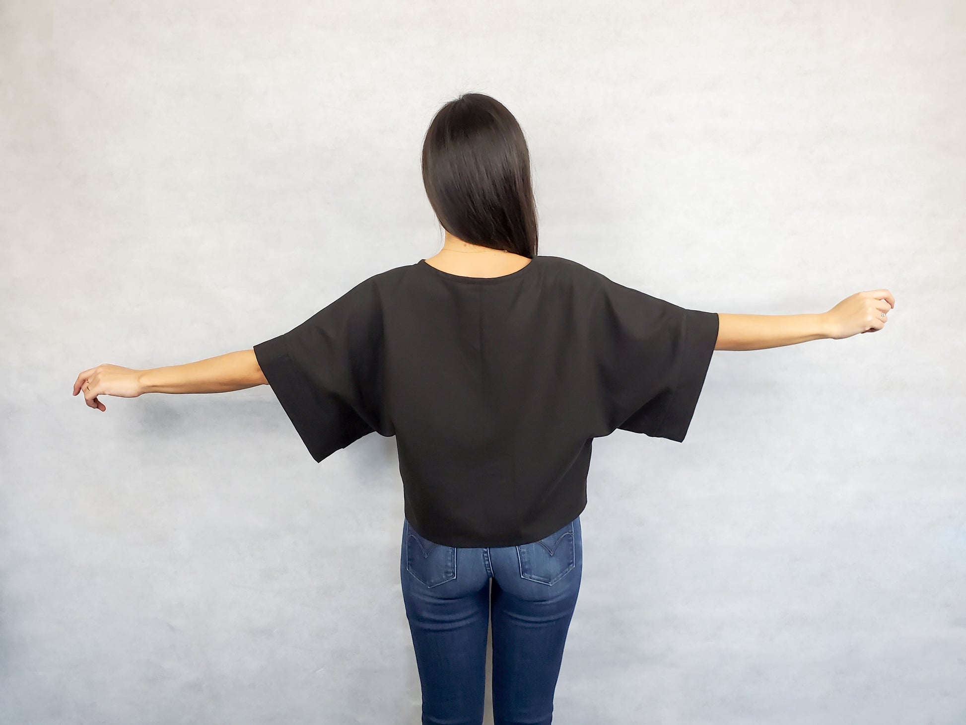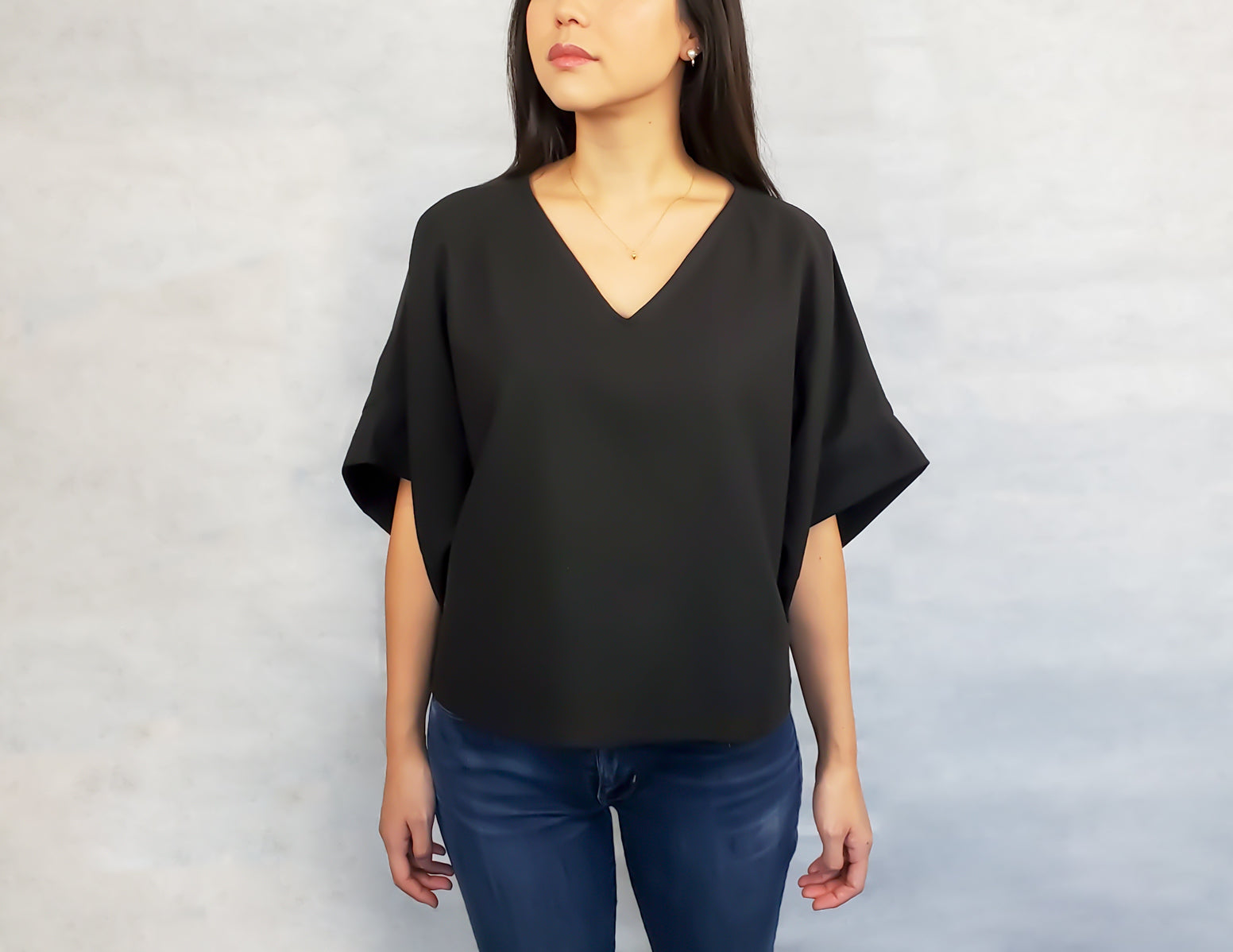 Beautiful top! I've already worn this a few times and I absolutely love it. Completely versatile and comfortable. Yuki has thought of every detail, including adding the tag to the inside bottom rather than the collar so you can wear it with the V in front or back. I'll definitely be purchasing again!!
