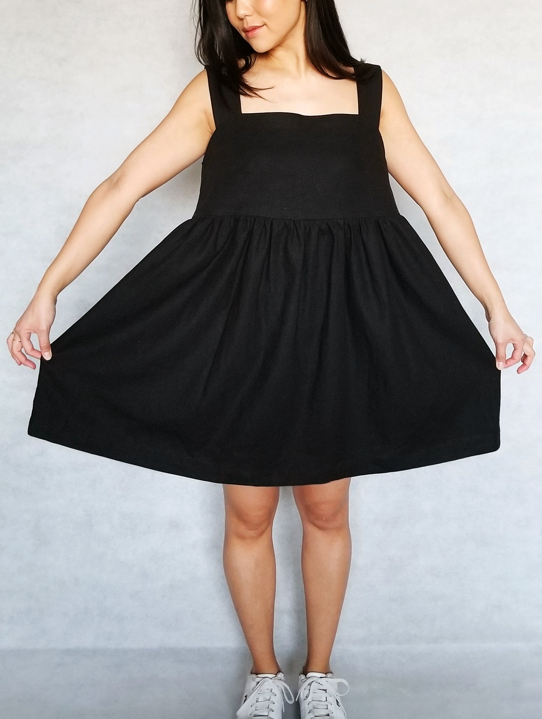 To wear as a pinafore, we recommend sizing up.