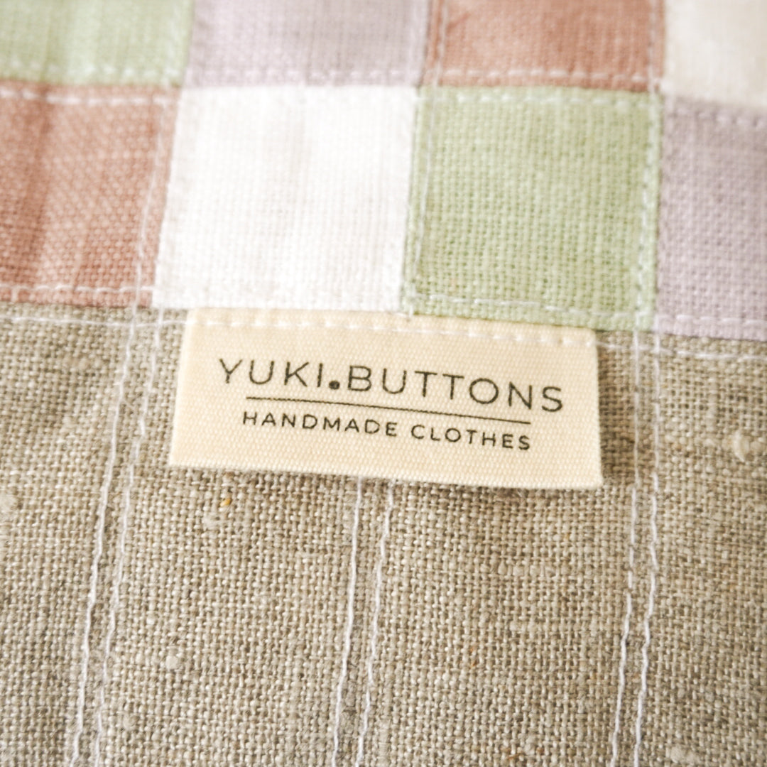 This is a zero-waste zipper pouch as it allows us to use up the smallest fabric scraps to make these beautiful pouches. Even the 100% organic cotton wadding is reconstructed with bits from making the Hanten Jackets. Nothing goes to waste!