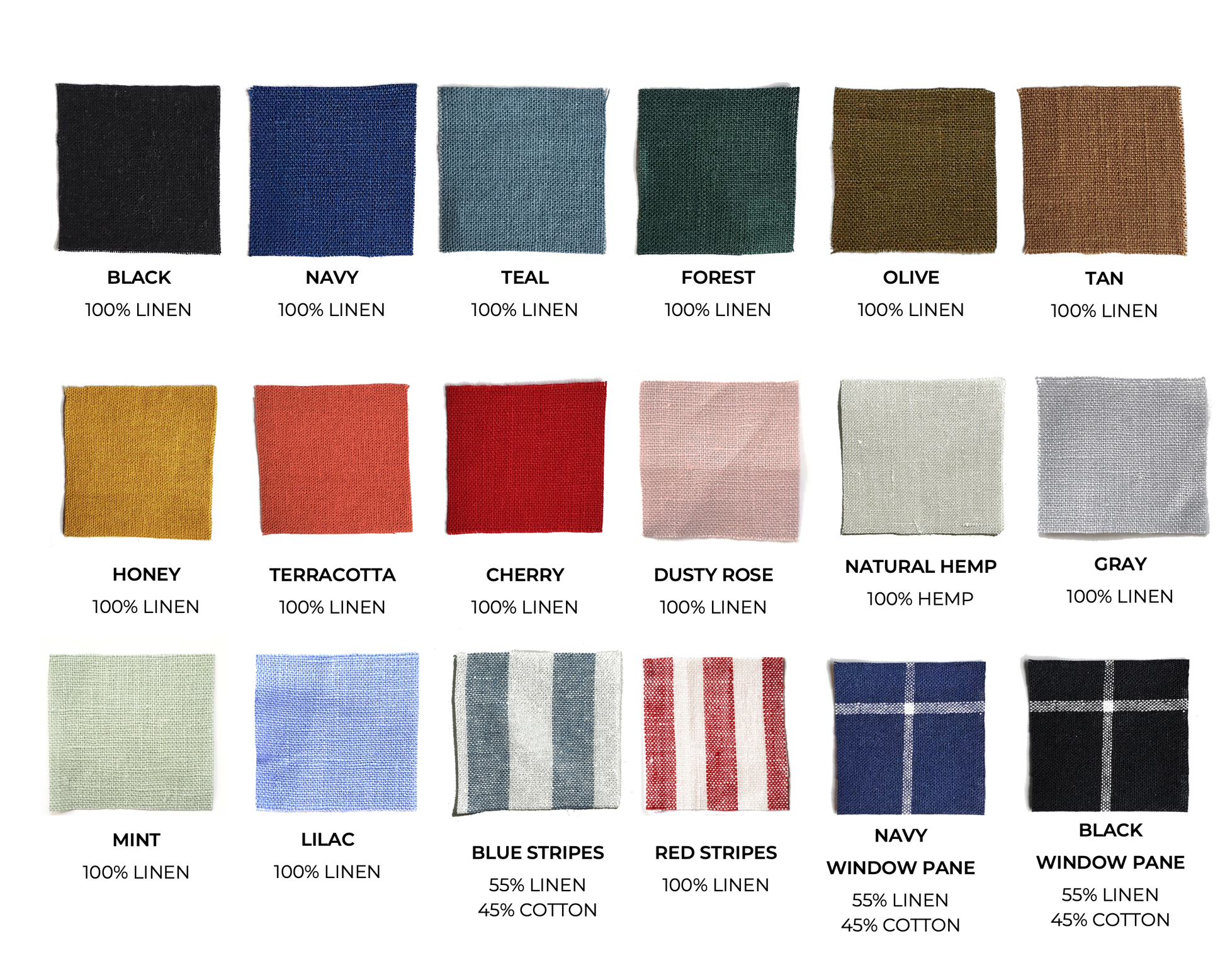 • We only use natural fiber fabrics such as linen, cotton, linen-cotton blend, and hemp.