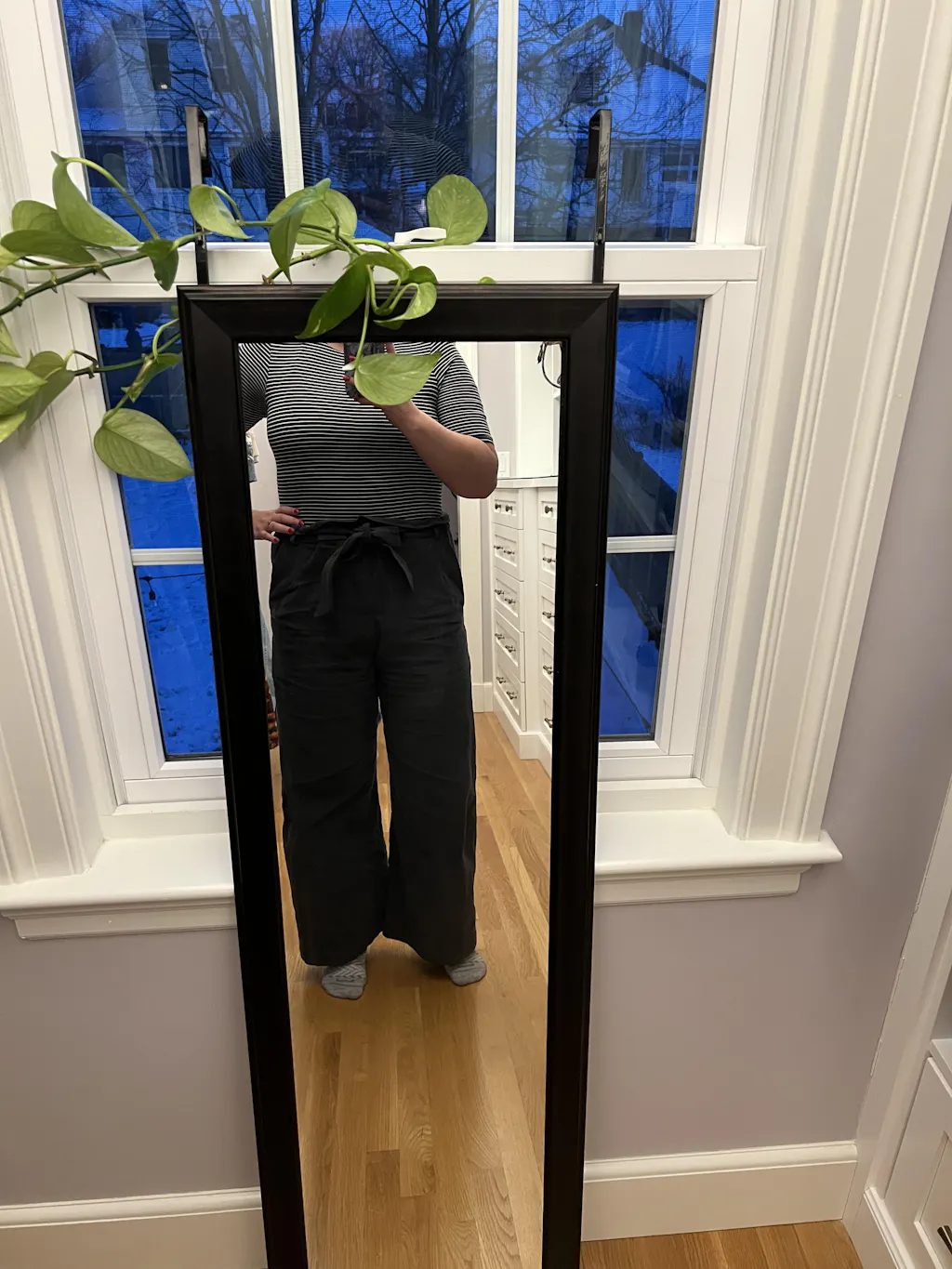 Yuki, was able to make these full length which makes them perfect for New England winter. They are easy but make me look so much better than casual leggings. Love them.