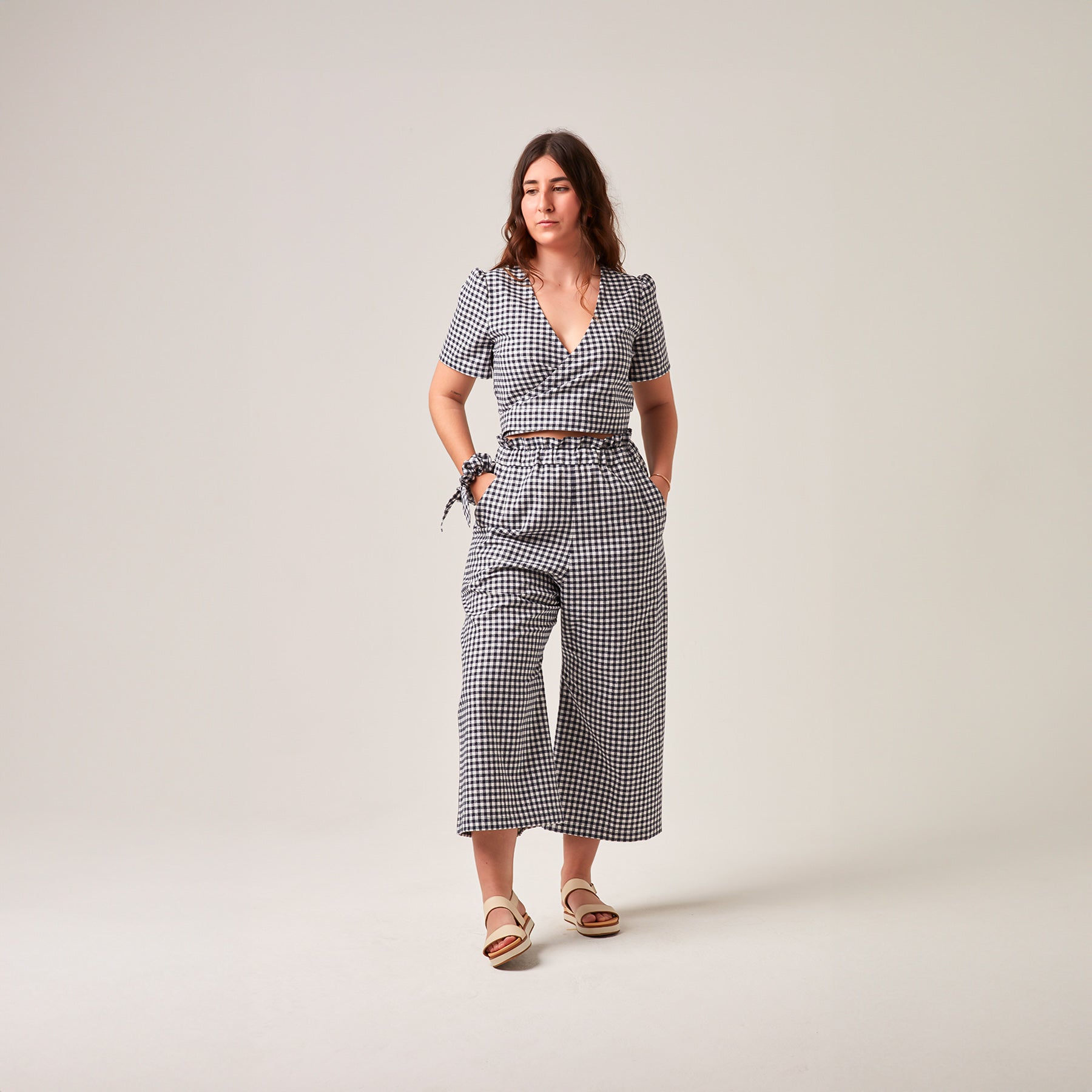 Cute summer set with a wrap top that accentuates your waist and our signature wide-leg pants.