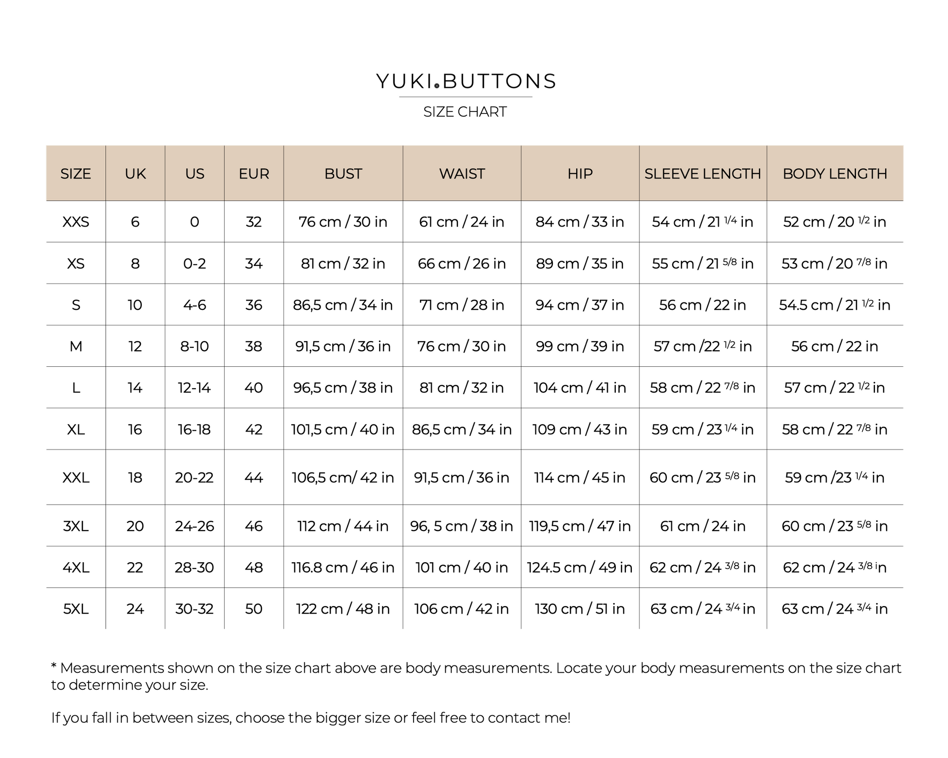For this item, choose the size based on your bust measurement.